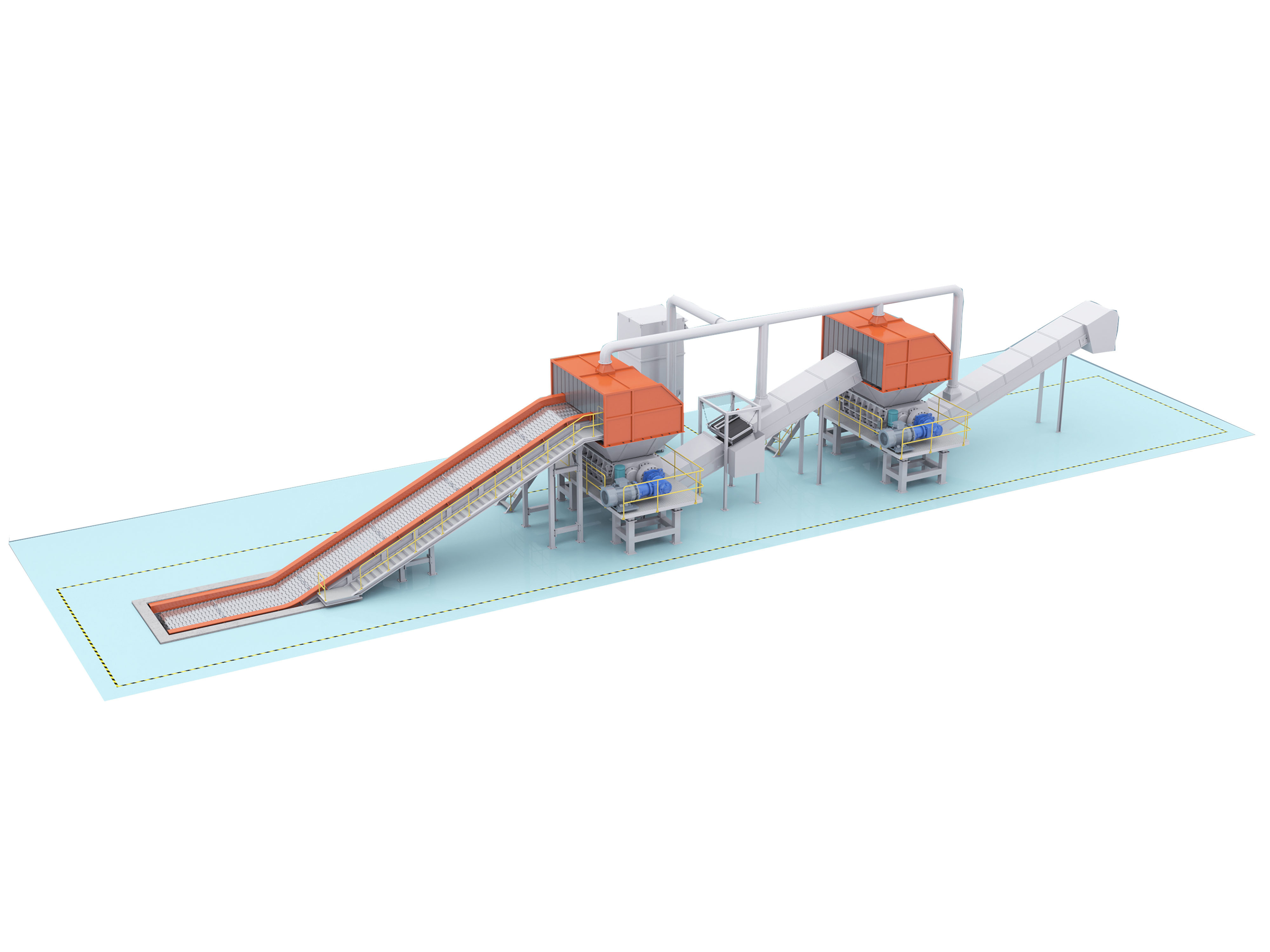 Trituradora de dos ejes La trituradora de dos ejes es una trituradora industrial de baja velocidad y alto par con una potencia mínima de 1,5 kW, ahorrando así energía.