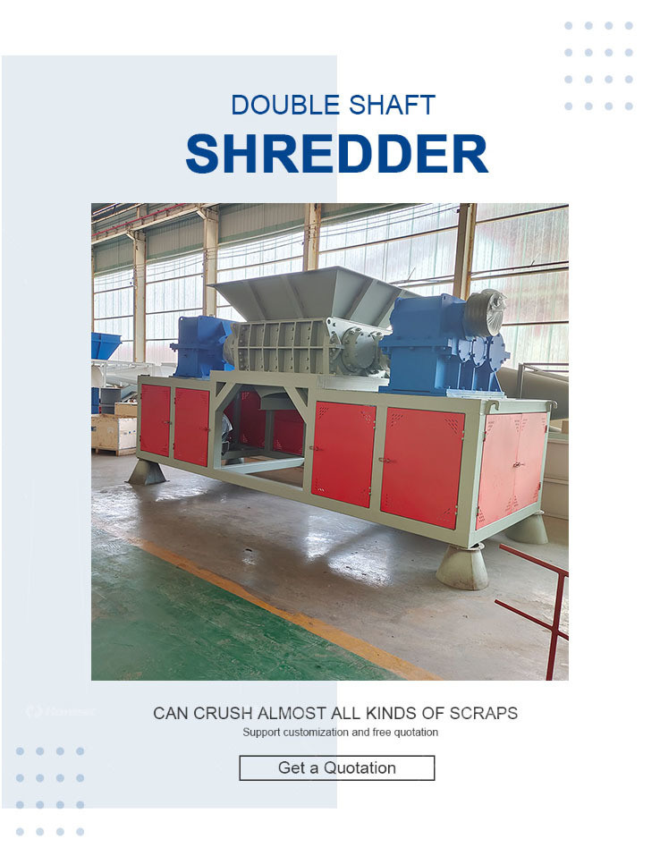 La trituradora de dos ejes presenta un gran par de transmisión, conexiones confiables, baja velocidad de rotación, bajo ruido y bajo costo de mantenimiento.